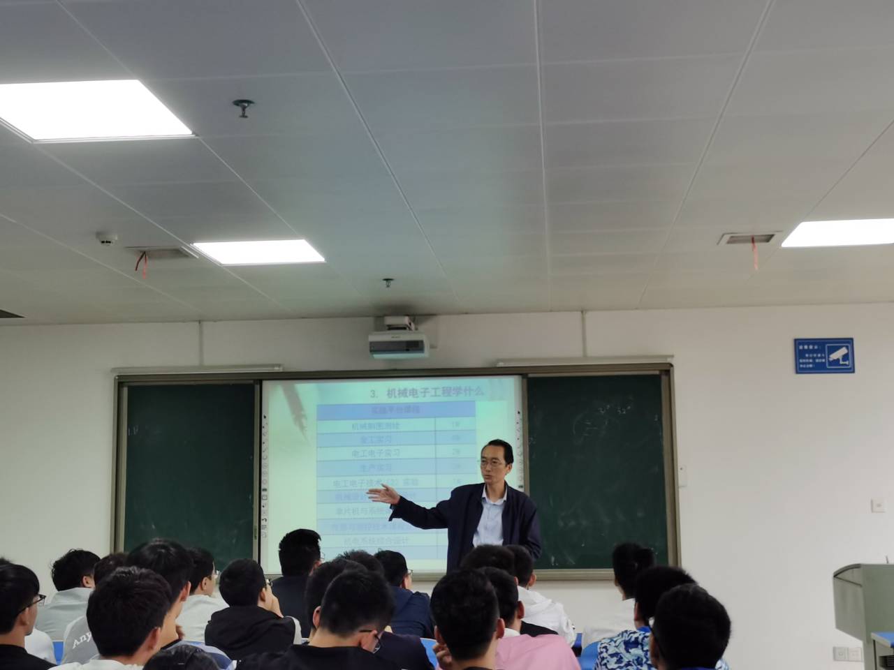 在讲解的过程中,丁跃浇着重对每门学科的定义,涉及内容,学习范畴,学习方法进行讲解,详细介绍了机械电子工程专业的开设意义及其就业前景,同时结合自己的学习、科研经历,阐述了对机电专业的认识,讲解的过程中,丁跃浇用通俗的话语,将以上几点总结为,是什么,做什么,学什么,怎么学四点,让同学们更容易理解。同学们针对自己对机电专业的疑惑进行了积极踊跃的提问,丁跃浇对这些问题一一做出了细心解答。讲座最后丁跃浇希望大家可以早日确定学习目标,树立远大人生理想,实现自己的社会价值。