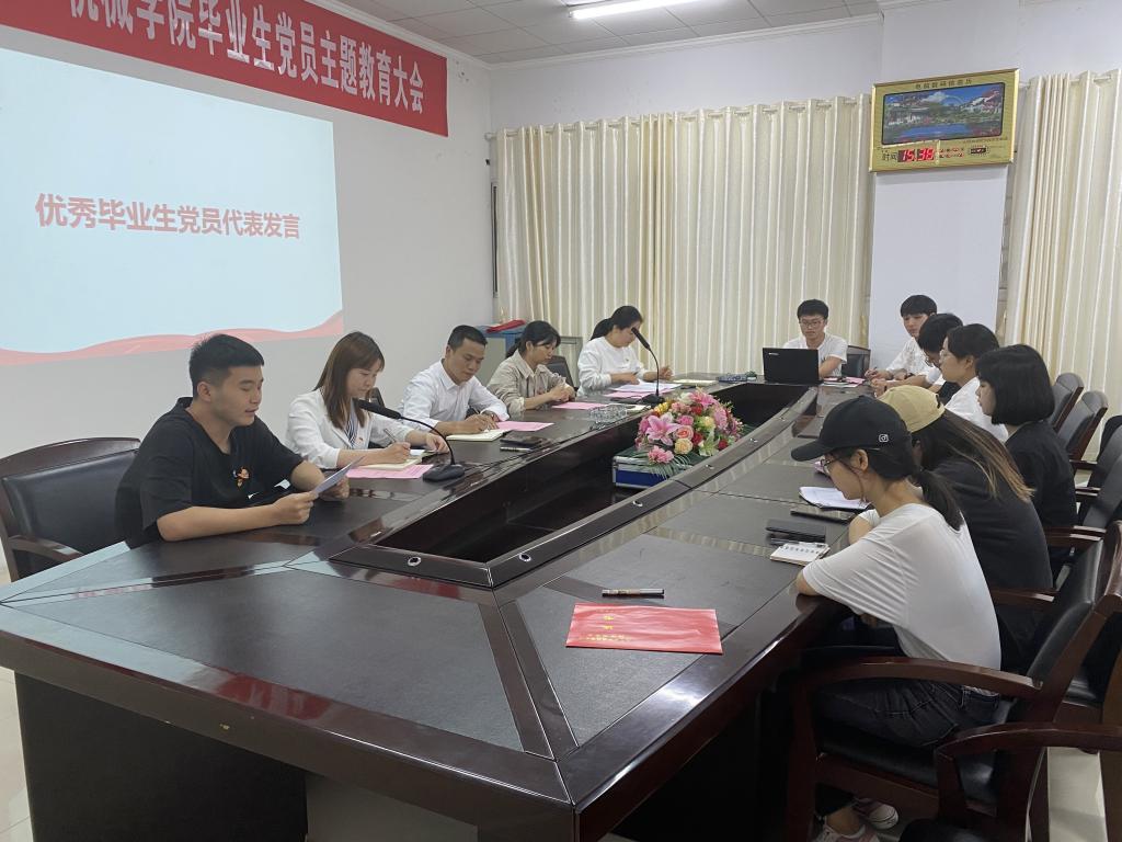 5月24日下午,永利集团3044于16栋永利集团3044会议室召开了“党章装进行囊,信仰伴我远行”毕业生党员主题教育活动。此次活动由研究生党支部书记王子嘉主持,公司党委书记胡文静、党委副书记徐湛、党委组织员李紫薇出席,47名毕业生党员全体参加。