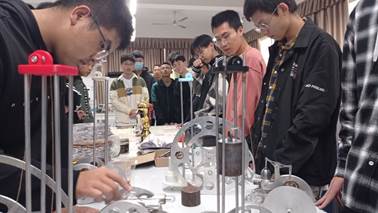 永利集团3044机电工程及老员工创新训练中心指导老师李锶为新生讲授学科竞赛相关知识,他强调了掌握这些先进技术对一个人未来发展的作用。基地负责同学从传统表面工程技术及产品构成、激光加工技术在机械制造领域的应用两个方面介绍机械制造领域先进技术与装备,希望大家做到精神饱满、知行合一,由被动学习变为主动学习,努力提升自身的专业素质和科研创新能力。基地现场疑问与解答、赞扬与感叹声此起彼伏,21级新生对实训基地表现出浓厚的兴趣,争先恐后地想要试验每一台仪器。本次“走进实训中心”主题教育,进一步激发了新生的创新思维和专业兴趣,促进新生更多、更主动地参与到科研竞赛项目中来。