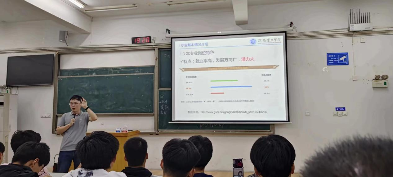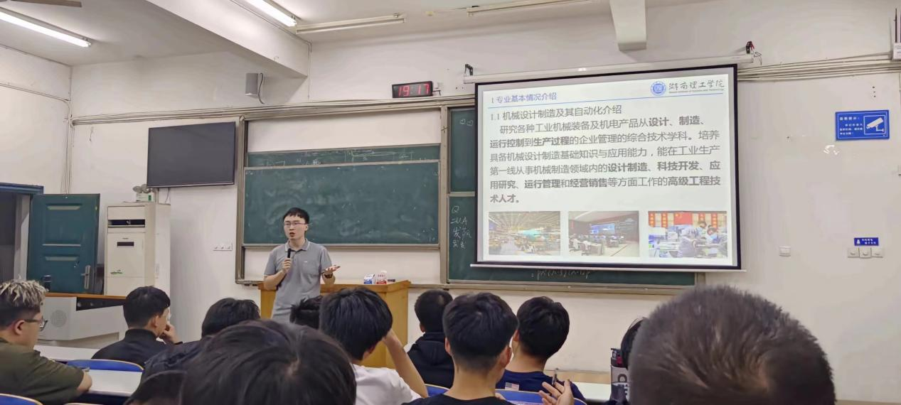 讲座开始,刘嘉明老师围绕“专业基本情况”,“专业发展前景”,“专业知识学习”三方面开展讲座。并引用巴以冲突等国际前沿大事强调了机自专业的重要性。同时结合我国《机械工业“十四五”发展纲要》提出了“无论是军事发展,还是日常生活,要想国家强大人民幸福,制造业必须强大”的观点。最后同学们对自己面临的专业学习问题,老员工活问题,以及未来就业问题提出问题,刘老师进行了详细的解答并提出自己的建议。并鼓励同学们用自己的知识回报祖国,让自己的老员工活丰富多彩。