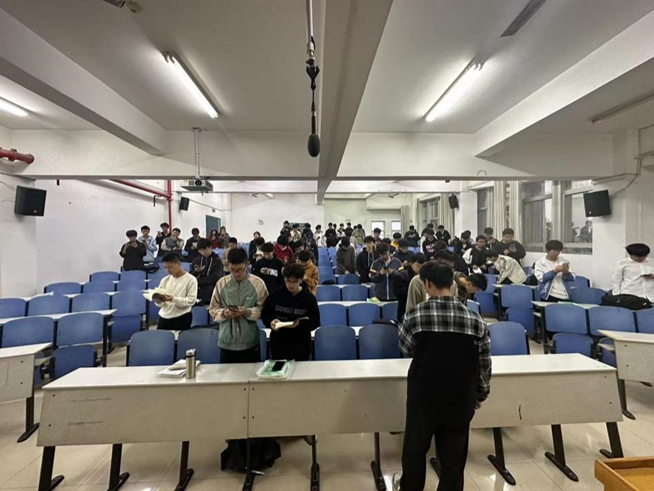 午后的阳光挥洒在教室里,机自二班同学们朗朗的书声高昂嘹亮。革命先烈的精神一直在我们的心中,未曾断绝,而这也鼓舞同学们不断去探索未知的人生旅途,此刻正是“鲜衣努马少年时,不负韶华行且知。”